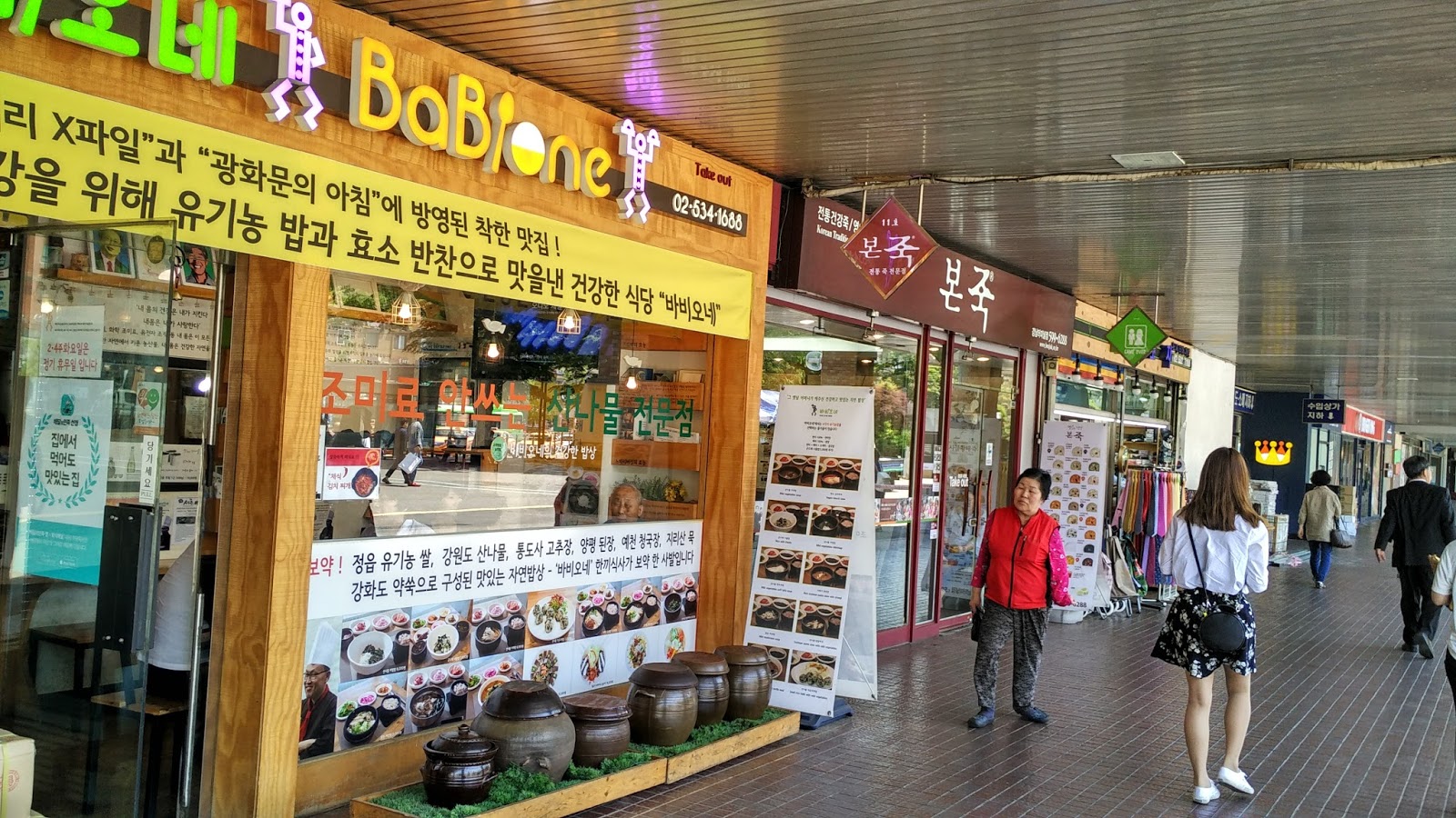 This is a cafeteria that is run by the Jogyesa temple. It is located in a small lane next to the temple and can be difficult to find. You first need to buy a voucher for 4000 won from the temple's souvenir shop. Then you hand over the voucher and order your mains from a limited menu of 4 noodles and 3 rice. On top of your main order, there is free flow of white rice, seaweed soup, kimchi which you can self-serve. I ate here twice on my first trip and really love the cold bibim noodles (bibimguksu). The soft noodles in broth (janchi guksu) is also not bad. At 4000won, it is probably one of the cheapest meal you can have in Seoul.